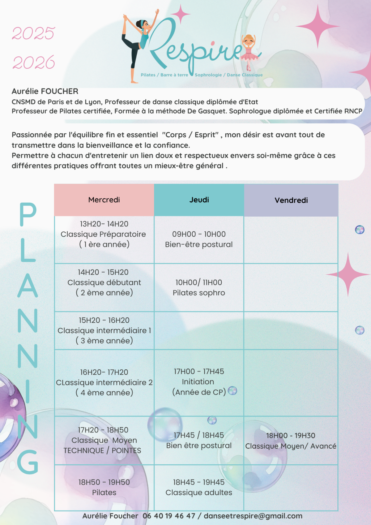 Planning et tarifs